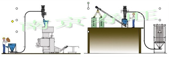 負壓輸送氣力輸送系統(tǒng)一般用羅茨真空泵或真空發(fā)生器為動力源,抽吸系統(tǒng)內(nèi)的空氣,輸送管內(nèi)形成低于大氣壓的負壓,進風(fēng)口形成物料與氣體的兩相流,進入管道,在一定的流速下,吸送到終點的料氣分離設(shè)備,物料在重力或離心力的作用下分離出來進入料倉,氣體經(jīng)羅茨真空泵或離心機排入大氣。